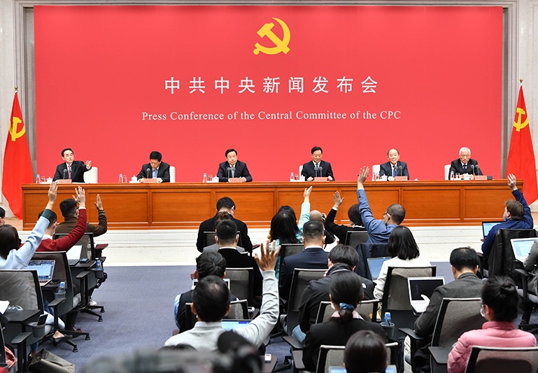 10月30日,中共中央在北京舉行新聞發(fā)布會(huì),介紹黨的十九屆五中全會(huì)精神,并答記者問(wèn)。 新華社記者 李鑫 攝