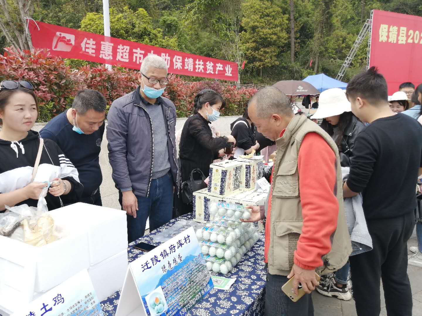 朱利慶帶著村特色養(yǎng)殖府庫綠殼土雞蛋亮相當地市場