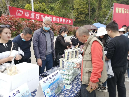 第一步便是養(yǎng)殖江漢綠殼雞,販賣綠殼土雞蛋?!傲窒伦匀环硼B(yǎng),生態(tài)自由采食,原生態(tài)富硒綠殼土雞蛋,1.5元/個,走過的路過的不要錯過啊……”這是朱利慶于“保靖縣2020年消費扶貧愛心認購活動”上的推銷廣告詞。2020年4月9日,駐村工作隊又一次成功地把村集體經濟,特色養(yǎng)殖——府庫綠殼土雞蛋推向了當地市場,此次展銷會共現場銷售2720個雞蛋,村集體當天收入4080元并與多家單位洽談了長期意向銷售。工作隊又購進8000羽綠殼蛋雞苗,以此進一步擴大養(yǎng)殖規(guī)格,帶動老百姓一起增收。