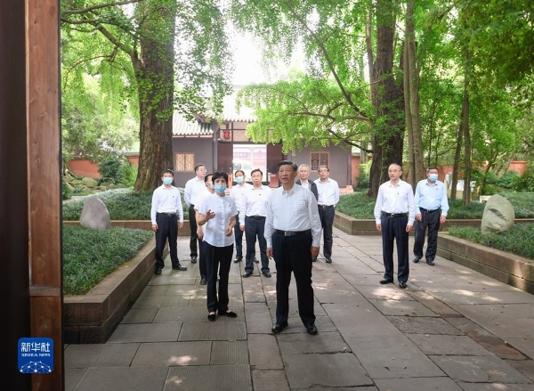 6月8日,中共中央總書記、國(guó)家主席、中央軍委主席習(xí)近平在四川考察。這是8日上午,習(xí)近平在眉山市三蘇祠考察。新華社記者 申宏 攝