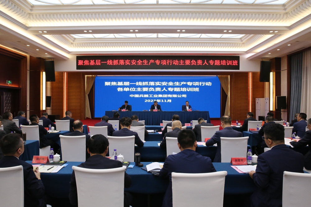 11月2日-3日,中國兵器工業(yè)集團(tuán)有限公司在北京舉辦聚焦基層一線抓落實(shí)安全生產(chǎn)專項(xiàng)行動主要負(fù)責(zé)人專題培訓(xùn)班,深入學(xué)習(xí)貫徹習(xí)近平總書記關(guān)于安全生產(chǎn)重要論述和重要指示批示精神,認(rèn)真落實(shí)中央巡視關(guān)于安全生產(chǎn)的反饋意見,貫徹落實(shí)集團(tuán)公司關(guān)于聚焦基層一線抓落實(shí)安全生產(chǎn)專項(xiàng)行動部署要求,通過工作解讀、安全履職、交流研討等模塊培訓(xùn),進(jìn)一步增強(qiáng)各級領(lǐng)導(dǎo)聚焦基層一線抓落實(shí)的政治自覺思想自覺行動自覺,堅(jiān)決打贏安全生產(chǎn)攻堅(jiān)戰(zhàn),筑牢集團(tuán)公司高質(zhì)量發(fā)展的安全基石。集團(tuán)公司總經(jīng)理、黨組副書記劉大山出席培訓(xùn)班開班式并作專題授課,黨組成員、副總經(jīng)理李春建、閆哲出席開班式,閆哲主持。