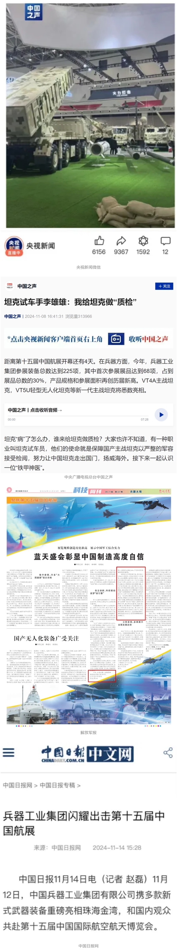 備受矚目!各大媒體廣泛報道兵器工業(yè)集團參展第十五屆中國航展